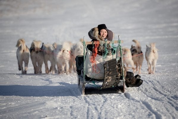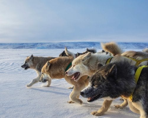Efter nogle timers kørsel langs øen Nunatarsuaq når I med slæderne tidligt på eftermiddagen frem til indlandsisens kant, og opstigningen begynder. Det er nu ganske udramatisk, da is og land nærmest glider i et, og hundene traver opad med løftede haler. 3-4 kilometer og Indlandsisen er nået!