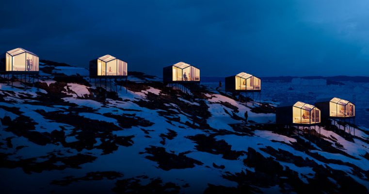 Hvis du er i Ilulissat, skulle du prøve en overnatning i Hotel Arctics nordlyshytter, som har en fantastisk panoramaudsigt over fjorden – med glitrende nordlys om vinteren og midnatssolens stråler om sommeren. Hytterne er placeret på en skråning over Diskobugten og er specielt udviklet til arktiske forhold. Hver hytte er 20 kvadratmeter og udstyret med bad og toilet, wifi, nem iPad-styring af belysning, lyd og termostat og har gulvvarme og indvendig vægvarme. (Billederne er 3D-repræsentationer af hytterne.)