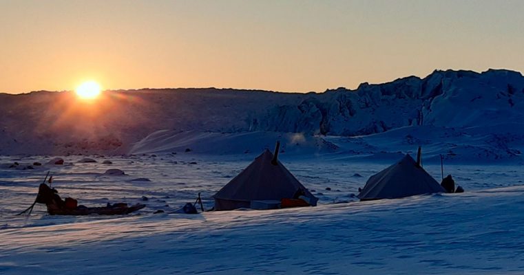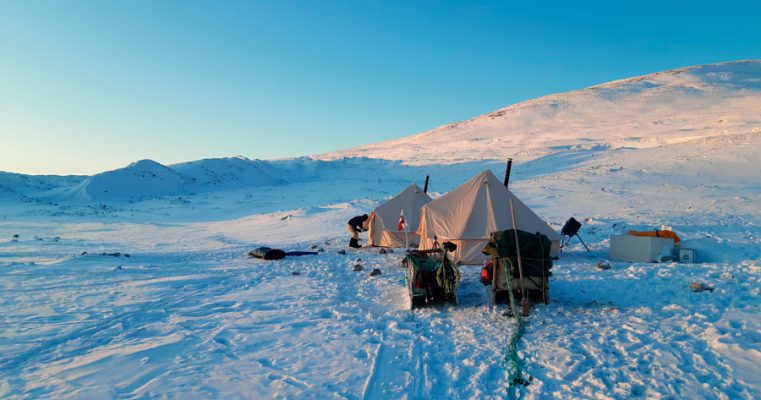 Campen ligger på selve Indlandsisen i Grønland, blot et par timers vandring fra kanten af isen. Du overnatter i ekspeditionstelte på tykke underlag og i varme ekspeditionssoveposer, så det er faktisk ganske behageligt.