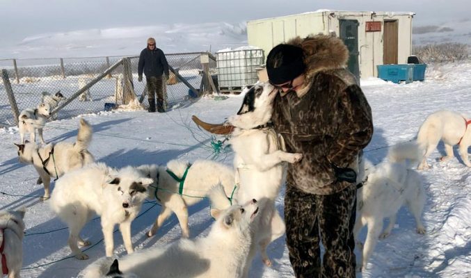 ”Der var -31 grader, men fordi der også var vind, føltes det som -41 grader. Heldigvis havde de sælskindstøj, jeg kunne låne. Min tur varede 1½-2 timer, og det var rigeligt. Det var i februar, og det er varmere senere på vinteren. Jeg havde virkelig meget tøj på. Tre-fire lag. Tre sæt vanter og tre lag rundt om ørene. Mit ansigt var ikke pakket ind, så jeg fik faktisk lidt forfrysninger på næsen og på kinderne. Det kunne mærkes dagen efter, jeg skallede lidt på næsen. Men det tager man jo med, for sådan er det jo,” fortæller Chanett.