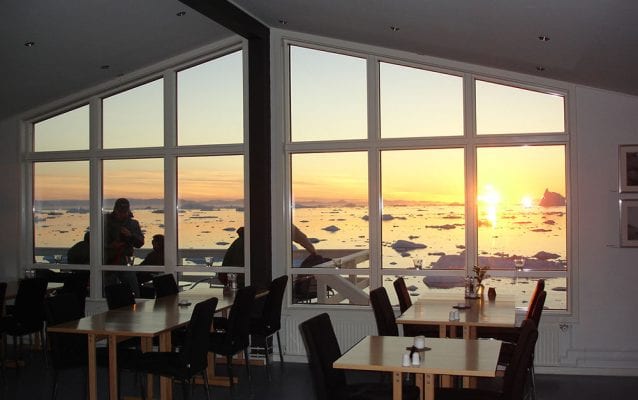Hotellet byder på fremragende middage i to restauranter, og den store terrasse uden for restauranten er det perfekte sted til at nyde et glas vin, mens du ser midnatssolen lægge sit gyldne skær over isbjergene ved Ilulissat Isfjord. Du vil elske det!