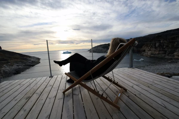 Glacier Lodge Eqi ligger 80 kilometer nord for Ilulissat overfor den kælvende bræ Eqi. Det giver dig en helt unik mulighed for at sidde og nyde et glas vin, mens du hører de store drøn fra bræen, når isen knækker af.