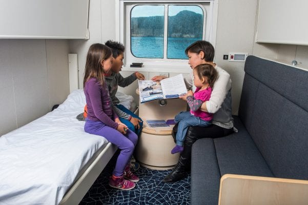 Kahytterne er beregnet til 1-4 personer, er ca. 9,9 m2 og indeholder bord, stol, garderobe og 220 volts stikkontakter. Der er eget bad og toilet, og sengelinned og håndklæde er inkluderet. Alle kahytter er ydre kahytter og har havudsigt.